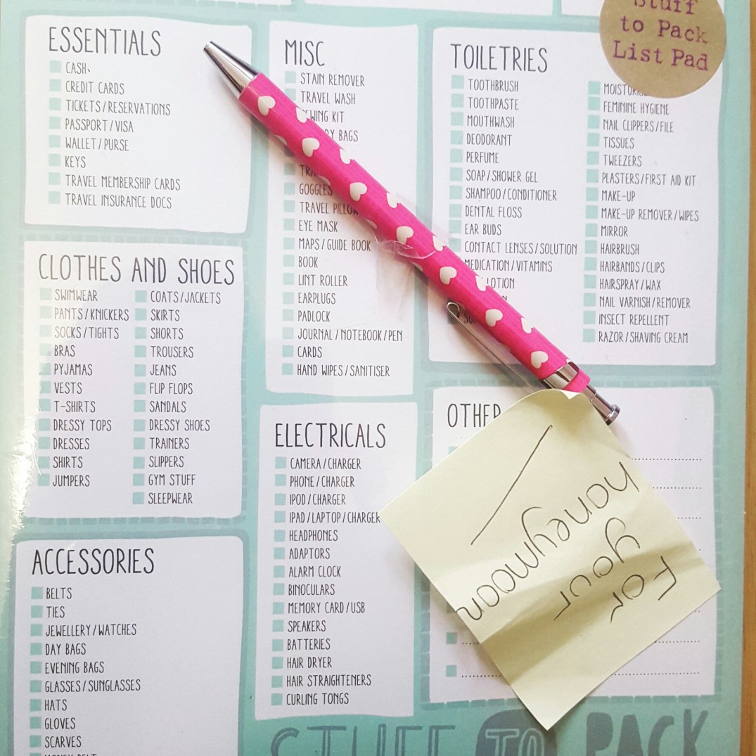 My friend Rachel got me this cute checklist & pen for my birthday! I love a bit of stationary and this will be great for making sure that we pack everything we need.