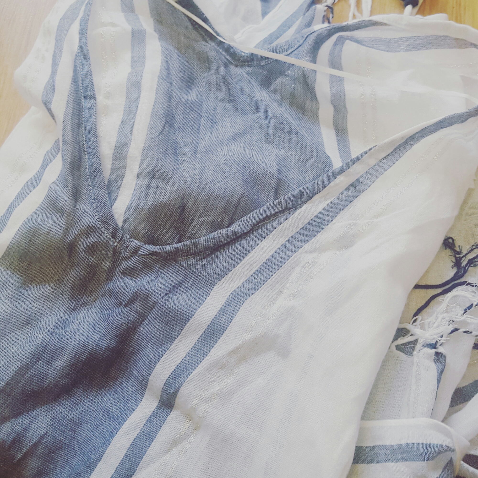First up, this is a lovely cover up from H&M for Β£14.99, it’s a really lovely floaty, thin material and I love the blue and white colours with the shimmer of silver/gold running through it…