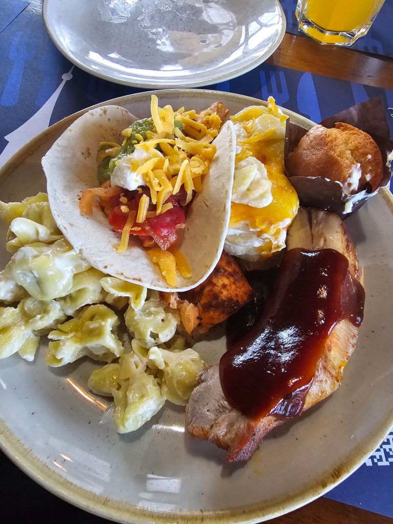 We tried a savoury ham and cheese one which was very nice and a triple chocolate drizzled one.