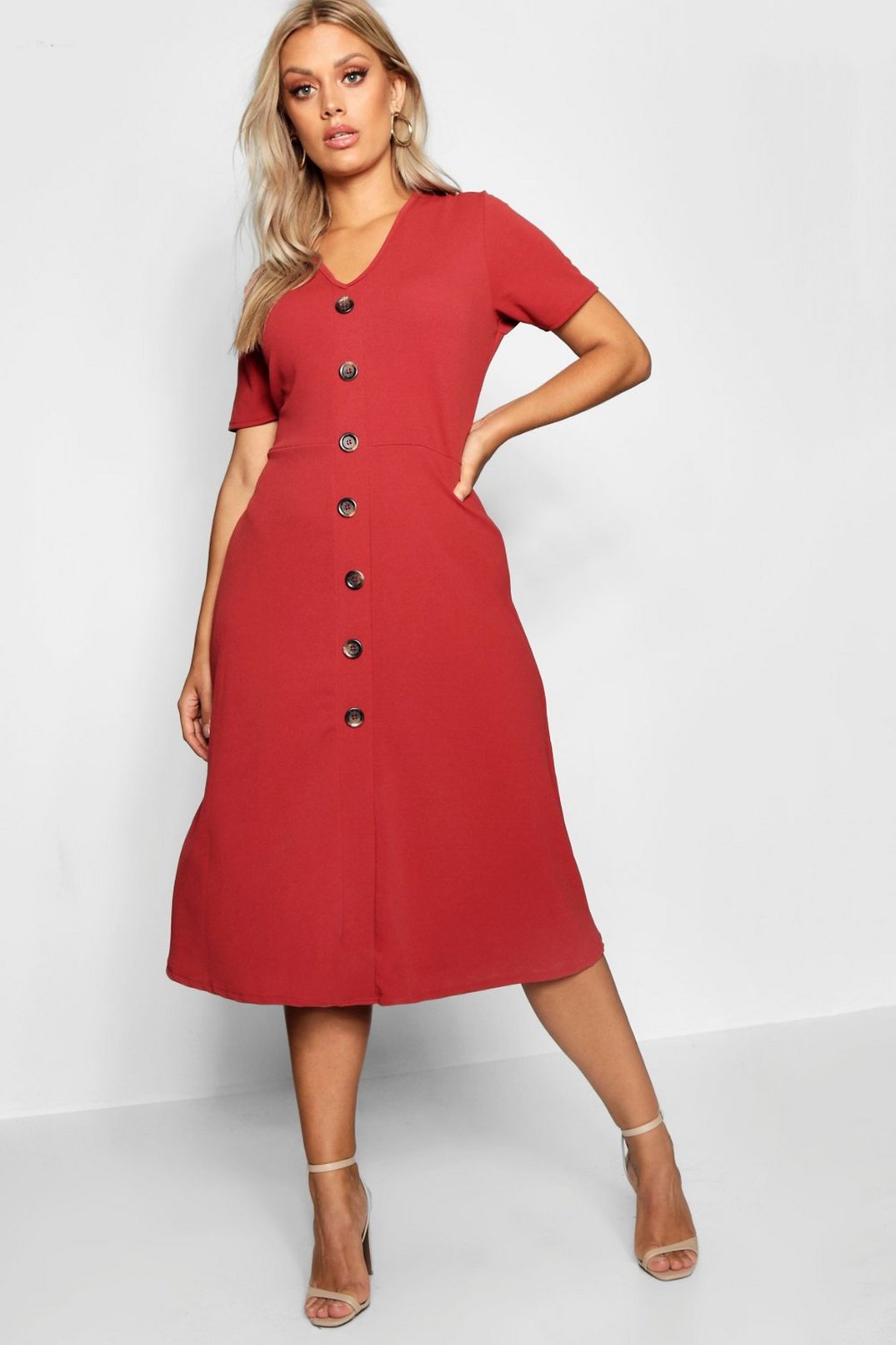Button Front Midi Dress, Boohoo Β£17.60