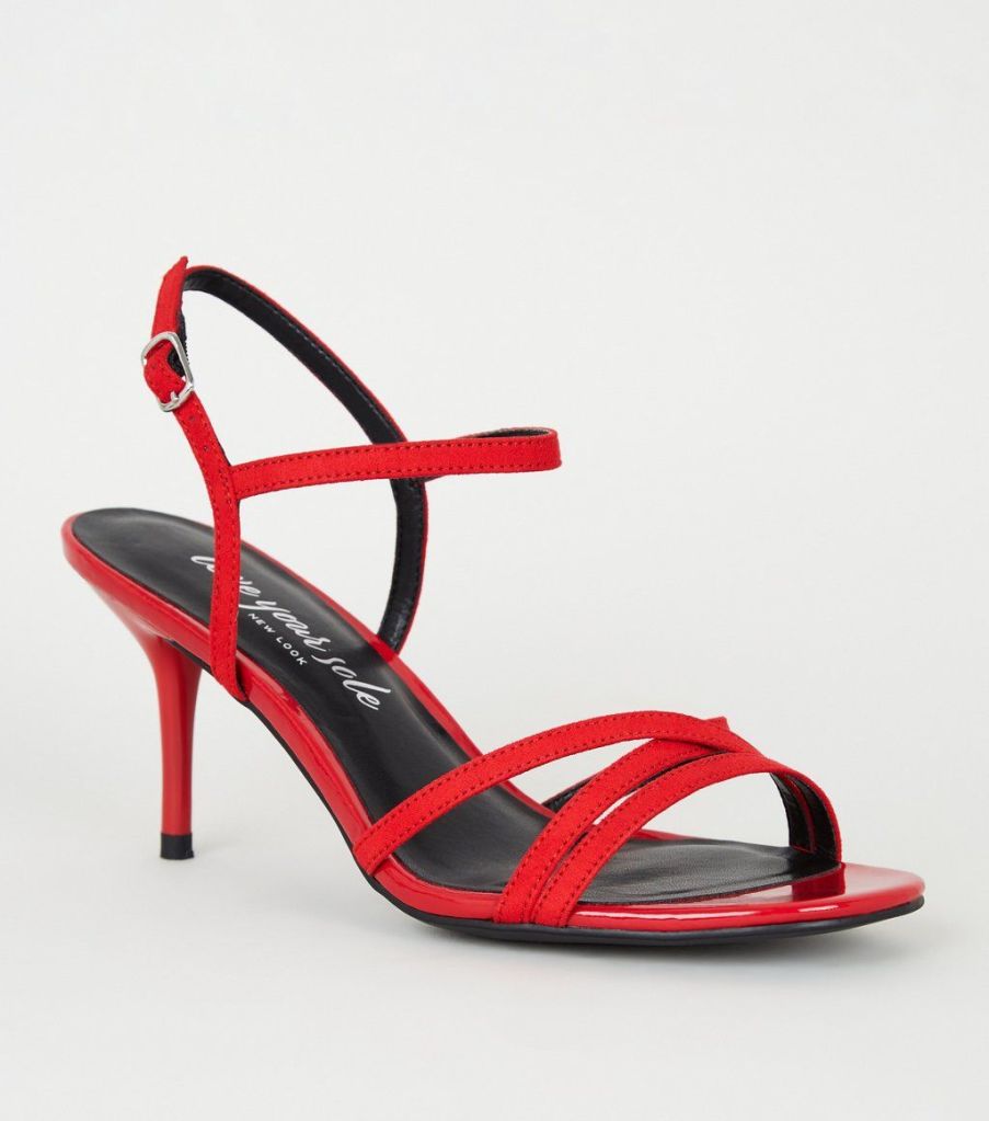 Red Suedette Strappy Mid Stiletto Heels, New Look Β£9.99